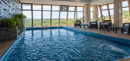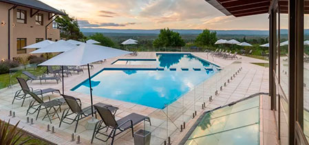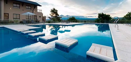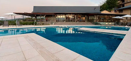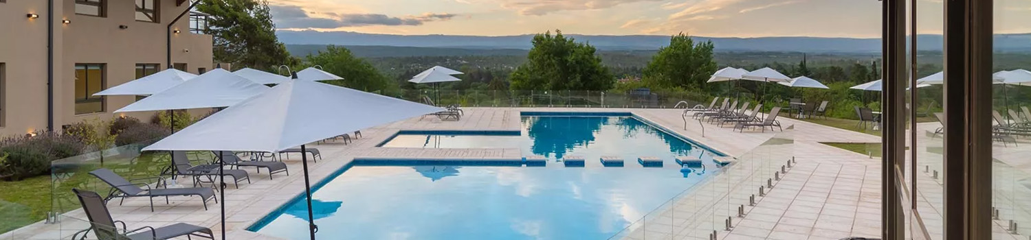 Disfrutá de nuestra pileta exterior con vista panorámica y nuestra hermosa pileta cubierta climatizada.